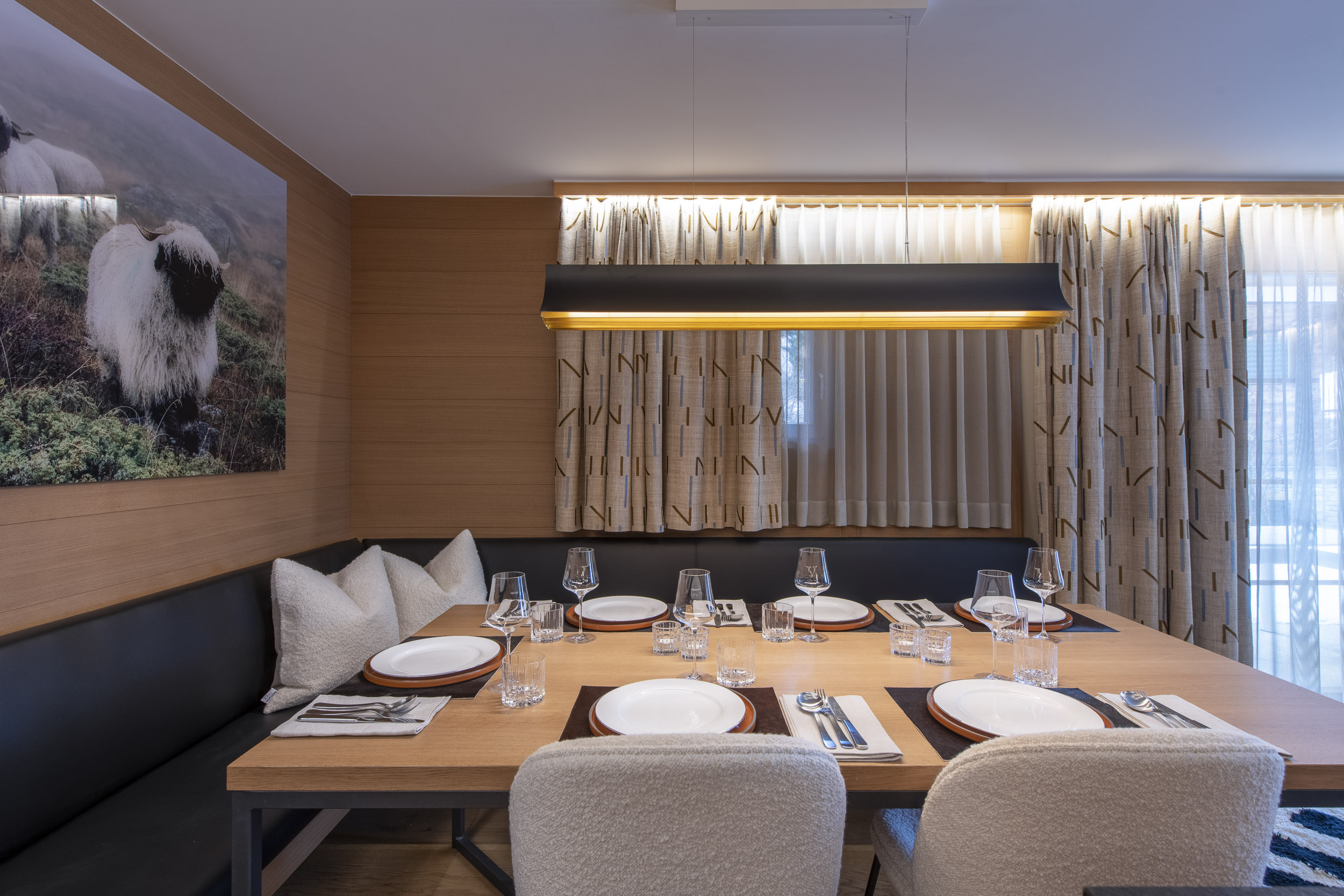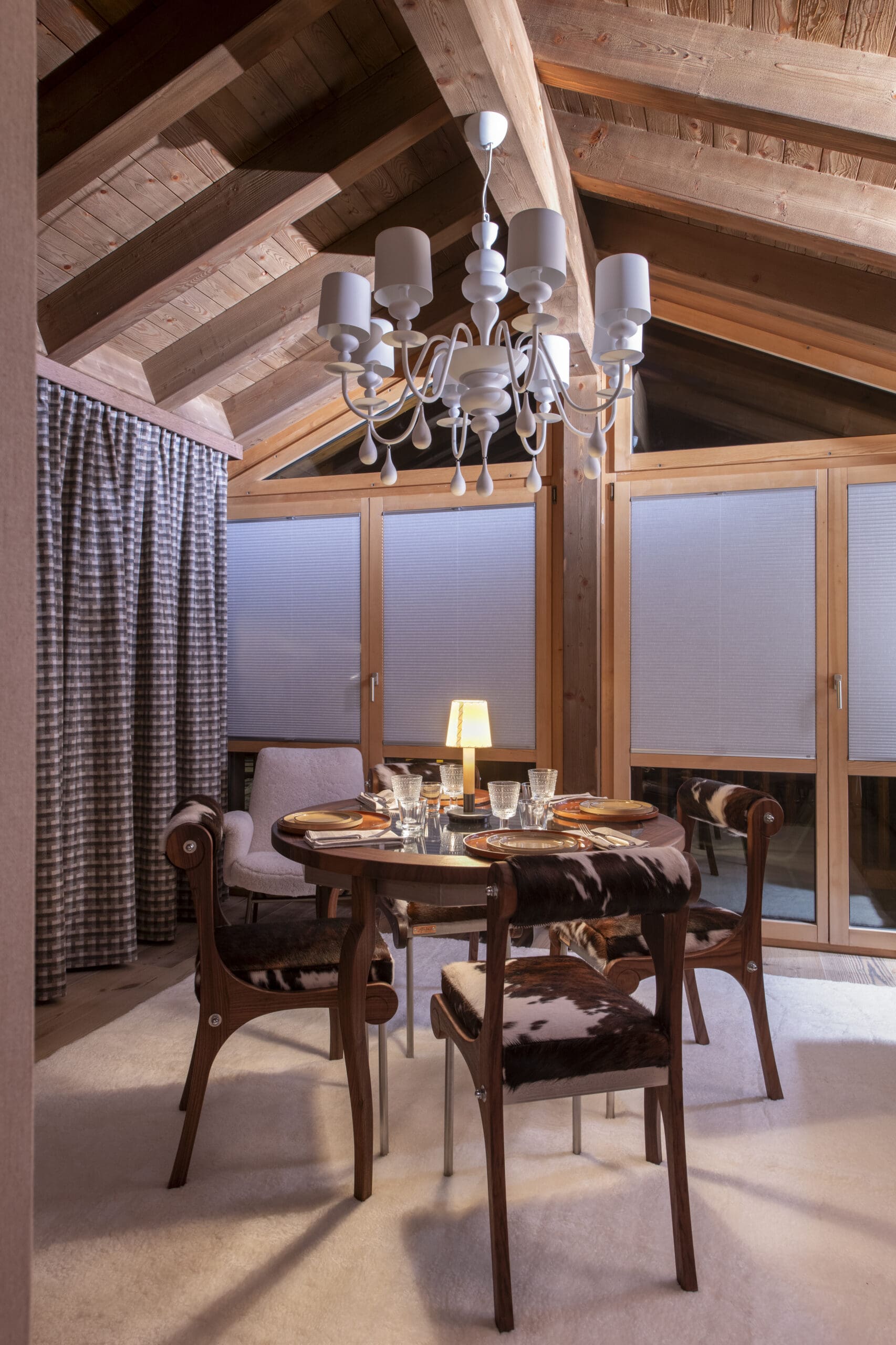 The shape of your room should guide the shape of your table. A rectangular room almost always calls for a rectangular or oval table, while square or compact rooms tend to suit round or square tables better. Align your table with focal points such as a central pendant, a fireplace, or a window. Symmetry reinforces calmness and elegance. If you’re working with irregular proportions or an asymmetrical layout, consider a pedestal table – it creates visual balance while maximising legroom and flexibility.