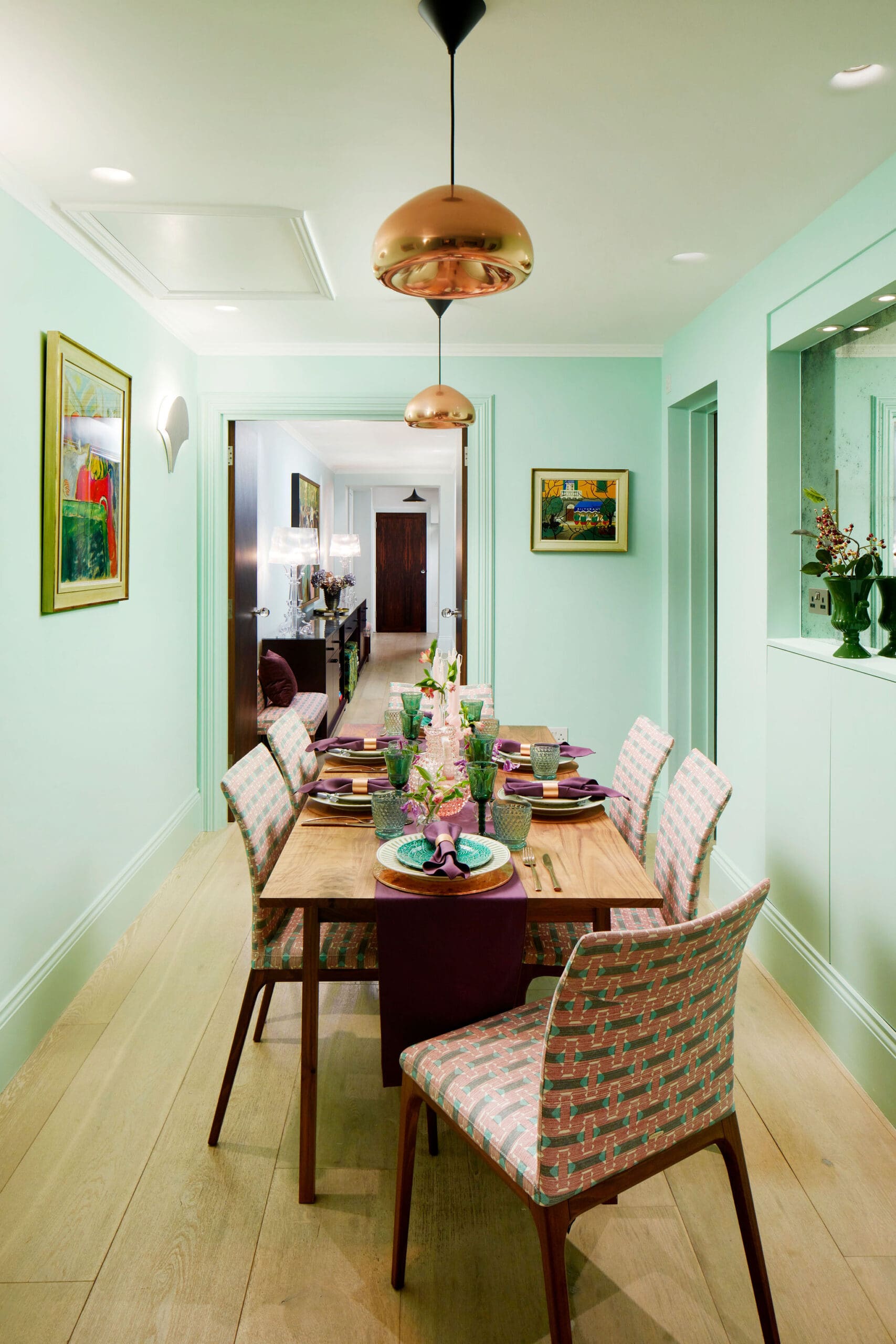 This is a comprehensive guide to everything I consider when selecting and styling a dining table including chairs and the environment for my clients. We’ll explore spatial dynamics, the practical and aesthetic implications of size, shape, and material, how to make your table work for your daily life, and how to craft a dining experience that feels intentional, layered, and elevated. Whether I am designing for a Georgian townhouse, a coastal cottage, a contemporary apartment or ski chalet, the principles remain the same: the table(s) should be a stage for connection, comfort, and style.