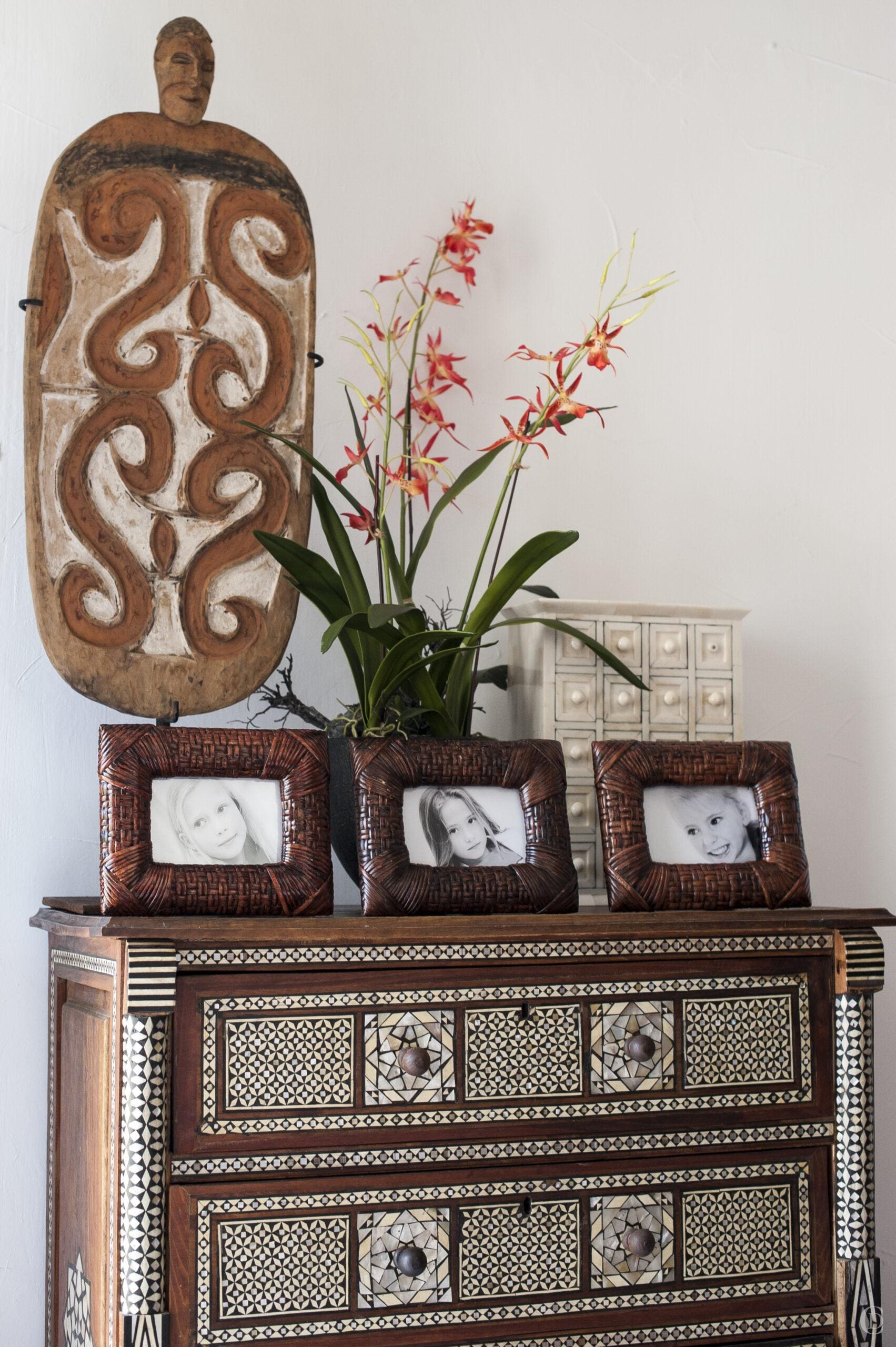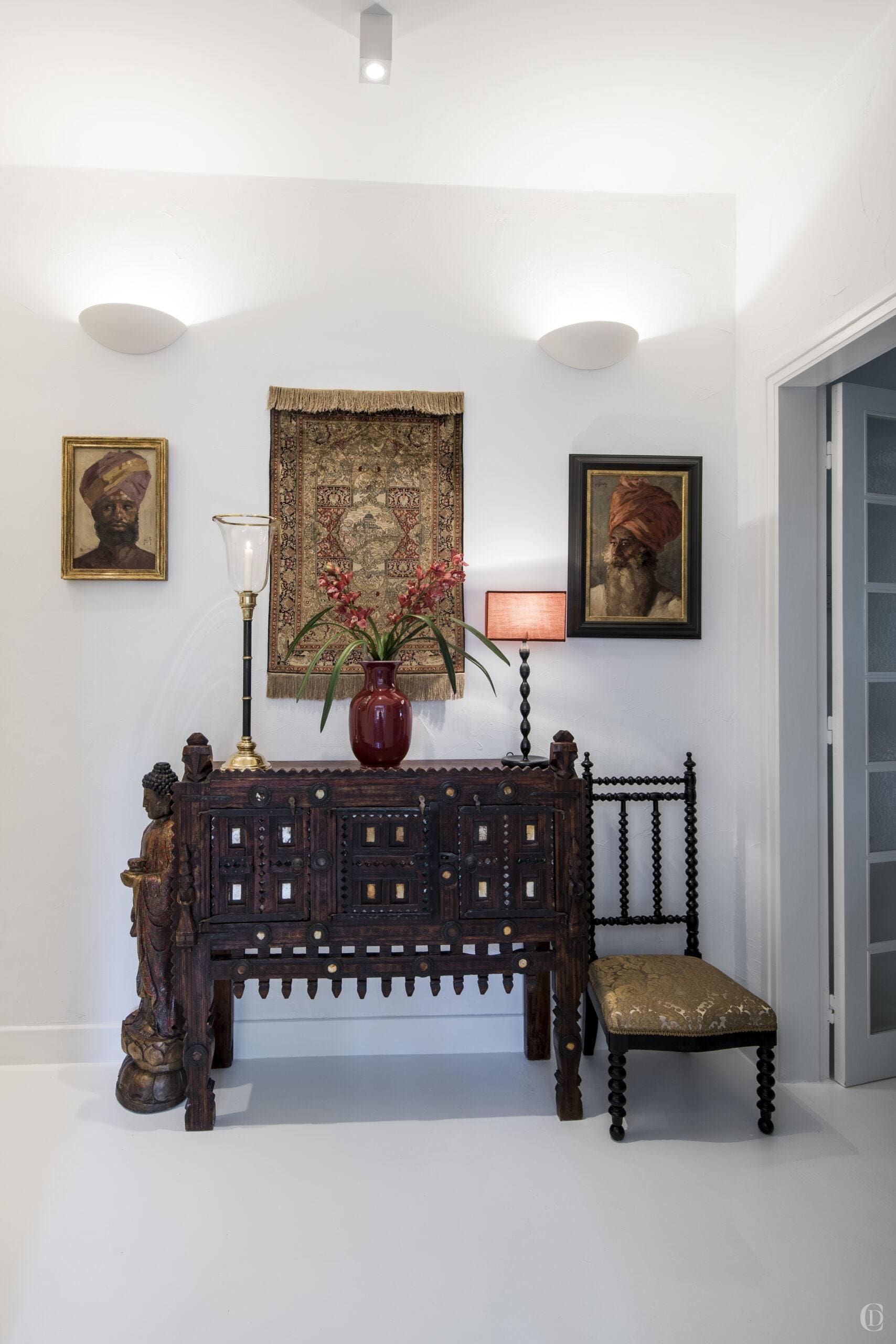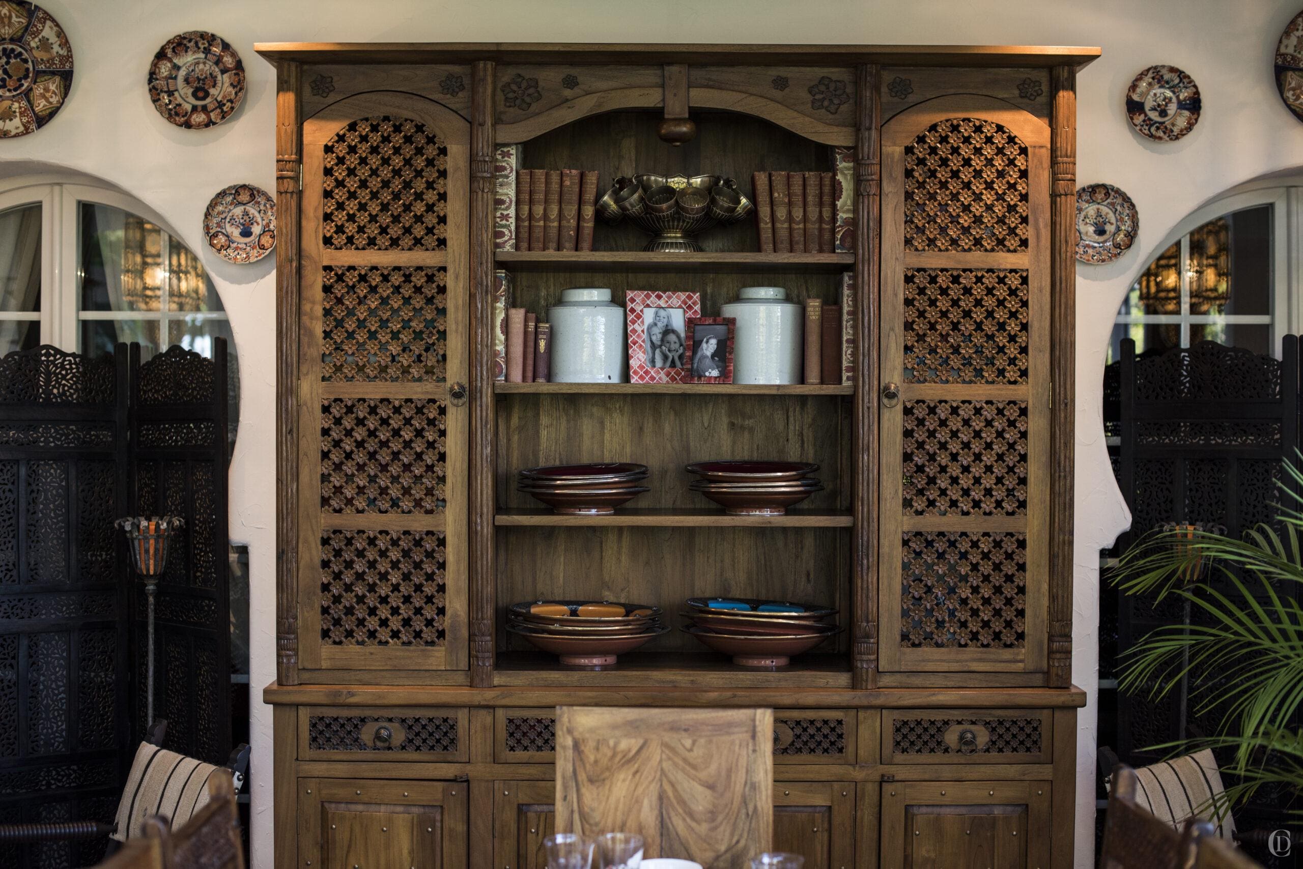 To realize our vision we researched the literature on buildings and interiors of the British and French colonial period style in the Caribbean, Africa and Asia, we drew inspiration from grand houses in India, Singapore, Morocco and many other exotic places. It was a wonderful immersion into this rich cultural heritage which we wove into our designs. Some pieces we could not find and had to commission and I drew on images and sources to work with artisans worldwide to make bespoke pieces for the house such as the dresser and sofa bed and others.