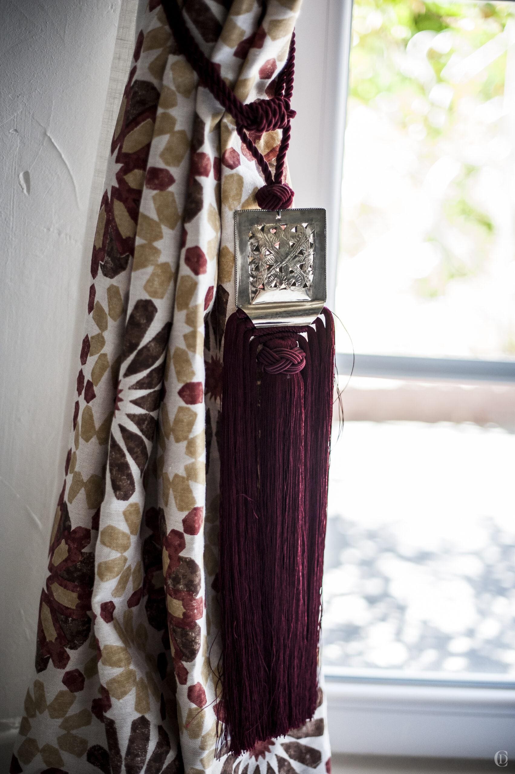We selected a faded shade of red by Farrow and Ball to paint exterior woodwork and this runs as a thread through the house and the property beyond. Coupled with this we mix a rich tapestry of oranges, reds, purples, dark wood and whites which are evident in rugs, curtains, wall hangings, oil paintings, bespoke lampshades and much more.