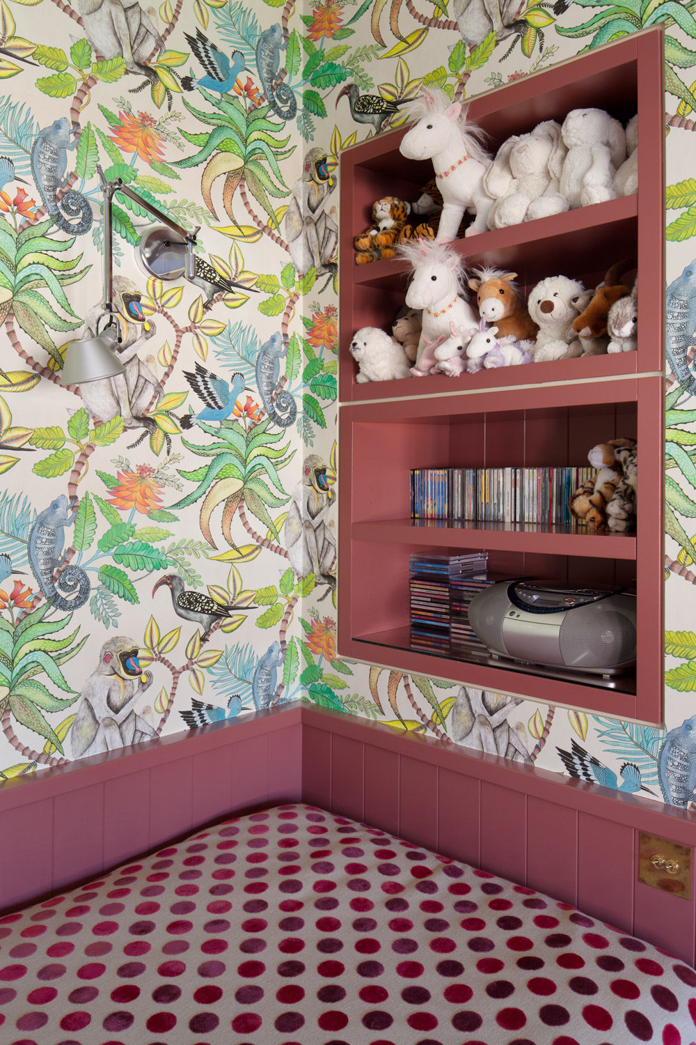 You might start out with a neutral backdrop for babies and toddlers to avoid overstimulation, but I believe young children and teens will enjoy living in colourful, playful, heartyly decorated rooms. Wallpaper and paint can easily be changed 2 or 3 times in the 18-20 years they will be living at home (or 35 years in more cases but lets not get into that). Do not fret over how long they will like a bold animal wallpaper. I prefer to focus on getting the bones of the structure properly proportioned.