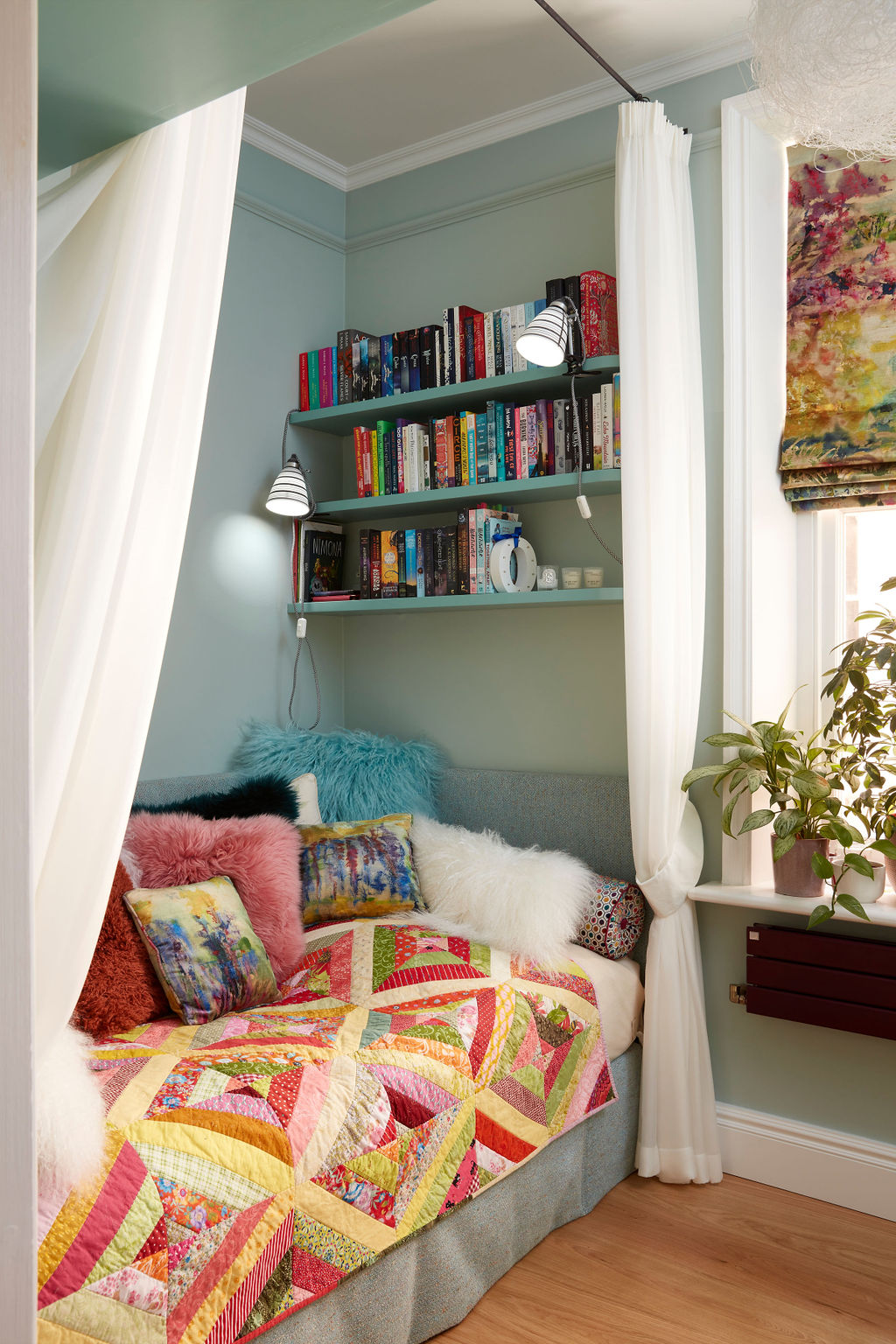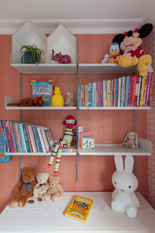 Bedside shelving is essential and will grow with your child from teddy bear collections, books and love letters, it’s the space close to their heart where they can express and keep their treasures.